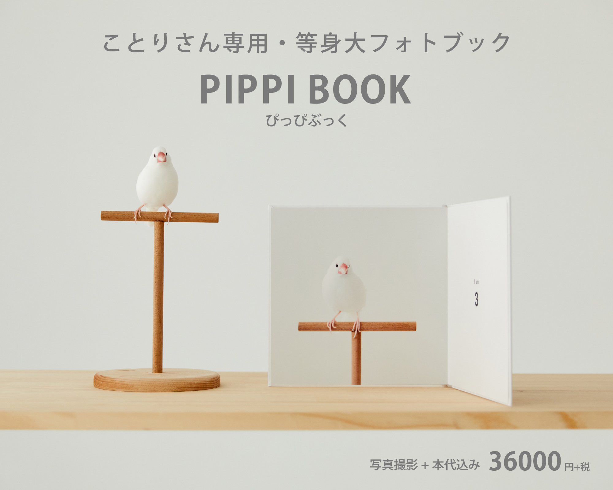 なので「小鳥さんとの楽しいお出かけの思い出ができたら素敵だな〜」と思い、小鳥さんと一緒に、家族みんなそろった記念写真を撮影できるイベント「ぴよぴよ ありがとうの日」を企画しました。暖かい気候の今だけできる企画となります! 小鳥さんの撮影会、かなりニッチなイベントを、ぜひお楽しみいただけたら幸いです。さらに、ことりさん専用・等身大フォトブック「PIPPI BOOK」なる、ニッチにニッチな本も作れるプランもご用意いたしました。
