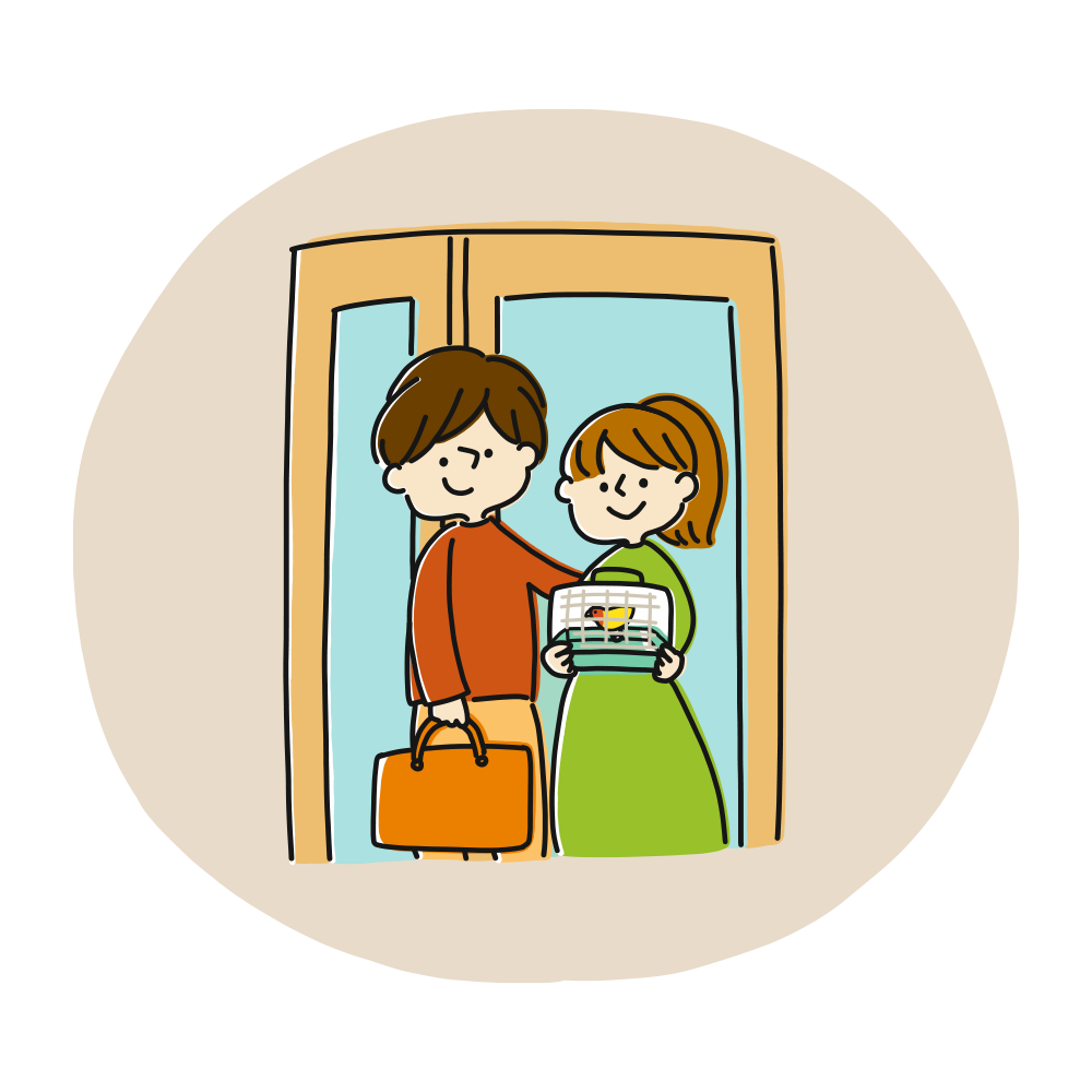 ようこそお越しくださいました! 店内に入られましたら、ドアに「撮影中!施錠しています。」のカードをつけてドアを施錠いたします。ケージを安全な台の上に設置いただき、撮影プラン内容のご説明させていただきます。