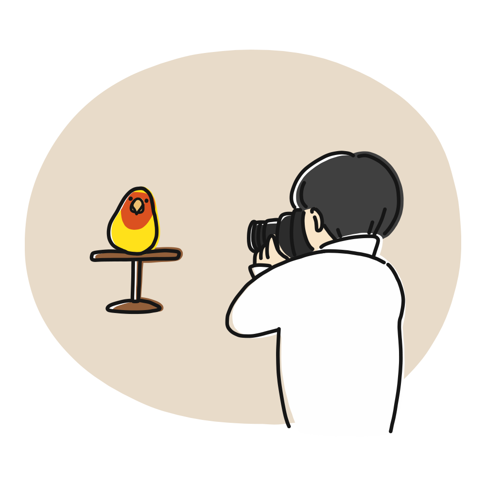 お客さまだけのプライベート空間で、写真家・堂園博之が、ゆったりと写真撮影を行います。10分間、写真撮り放題です! 時間内、撮影枚数に制限はございません。おおよそ、50枚ほどのお写真をお撮りいたします。連写ではなく、ことりさんの可愛い表情と仕草にピントを合わせて撮影をさせていただきます。