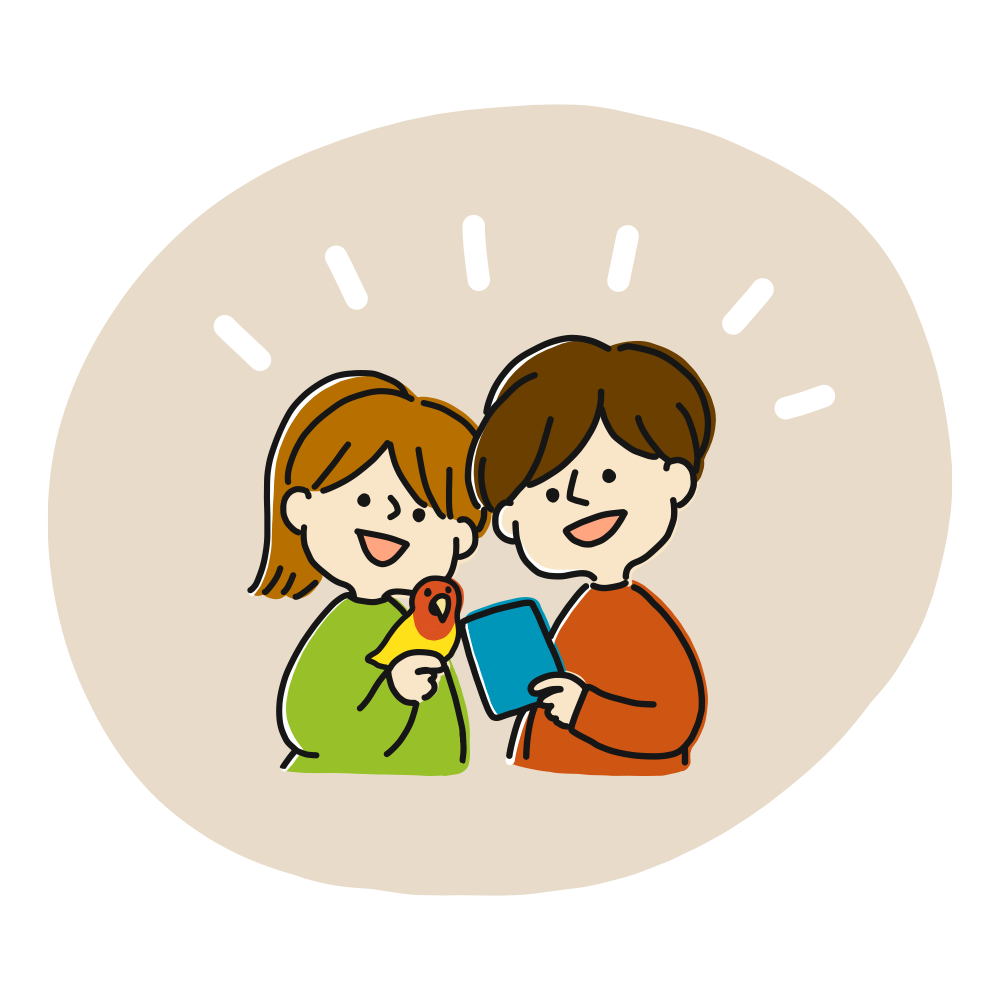 2羽様の場合は、それぞれのソロ写真なども撮影させていただきます。最後に、飼い主様も一緒に、ご家族全員で記念写真を撮りましょう!
