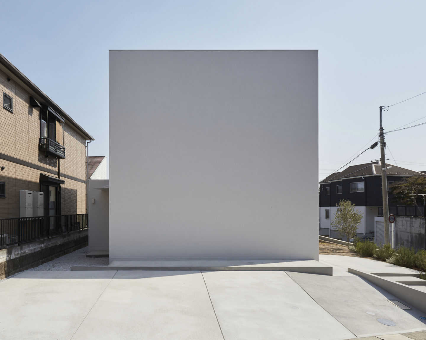 わんわん ありがとうの日の建物。駐車場側の面は、窓も何もない、真っ白な壁なんです。