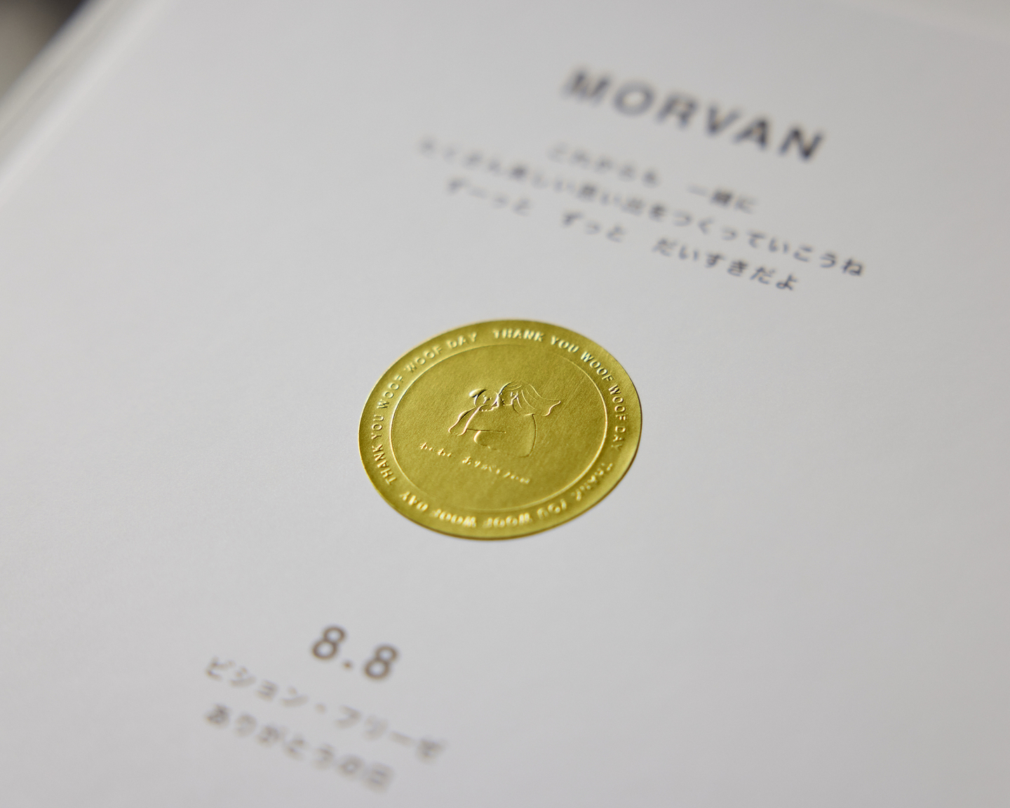 表紙はシンプルにわんわん ありがとうの日のロゴマークがデザインされています ※ケースつき