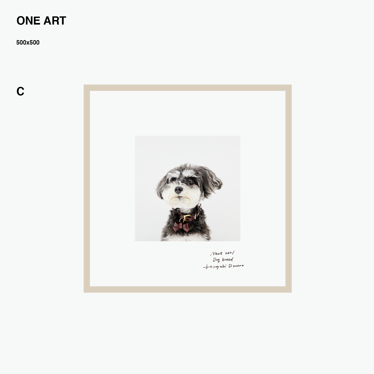 3 | わんちゃんのお名前・撮影された西暦・犬種・写真家名を直筆記載 |