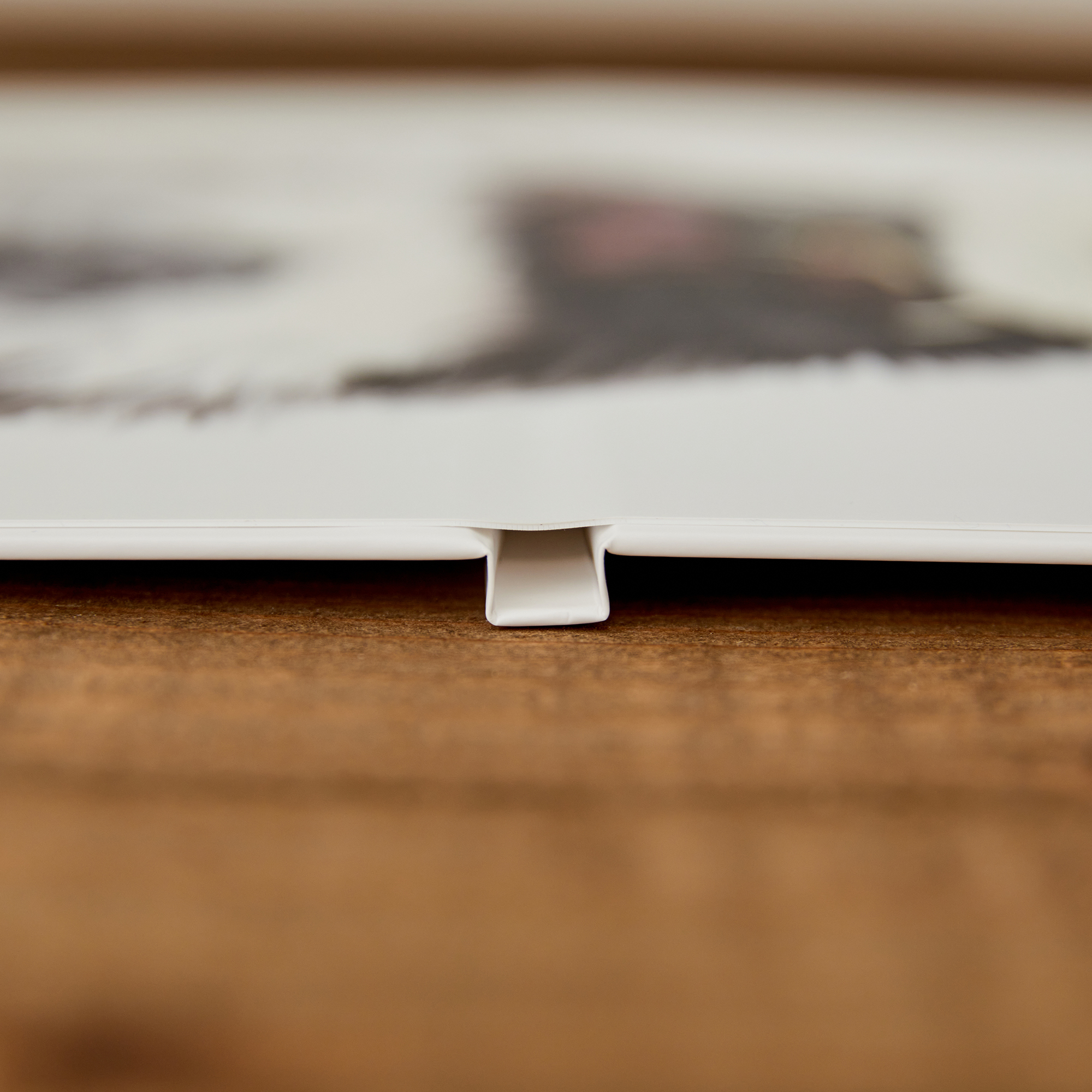 等身大の写真だからこそ、大切なわんちゃんの写真が、本の折り目でスジがビシッと入ってしまったら嫌なので、この本は、折り目が優しくたわむくらいになっています。この仕様、印刷会社さんが特許をとられていて、プロ契約をしないと作れない本なんです。