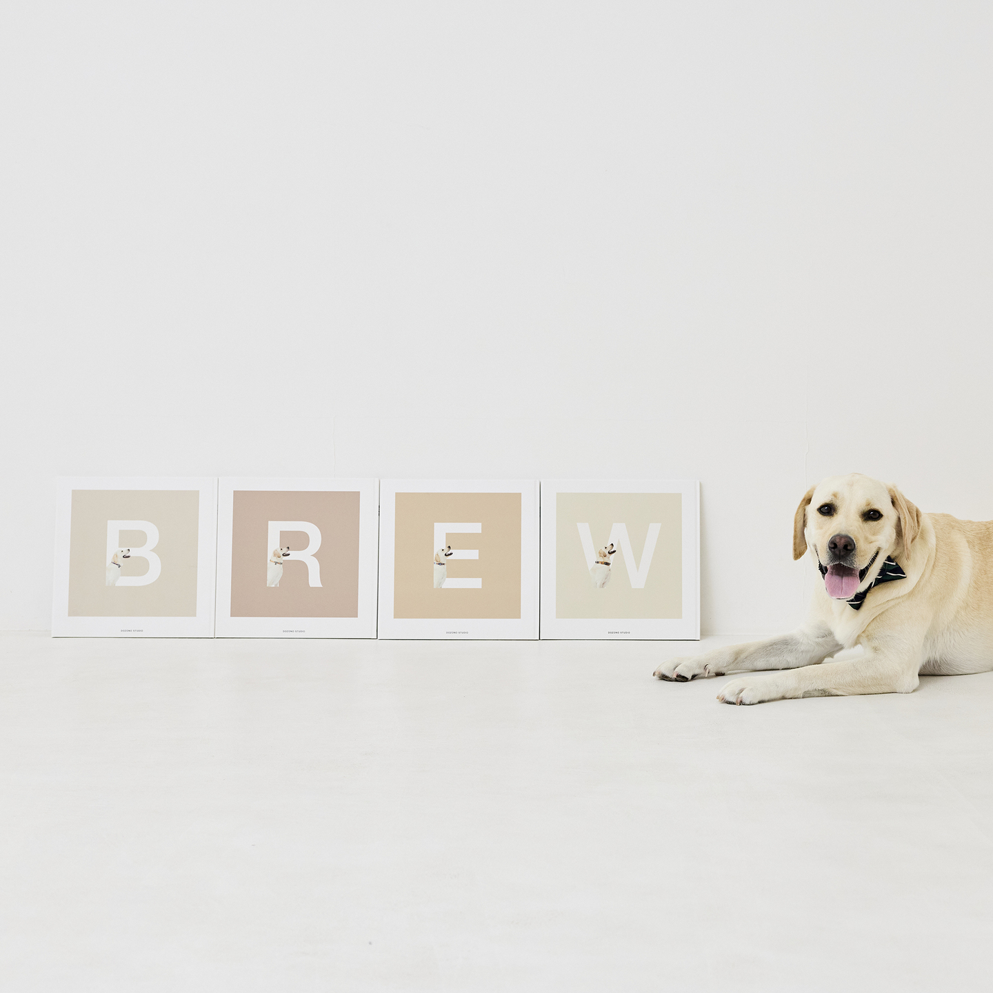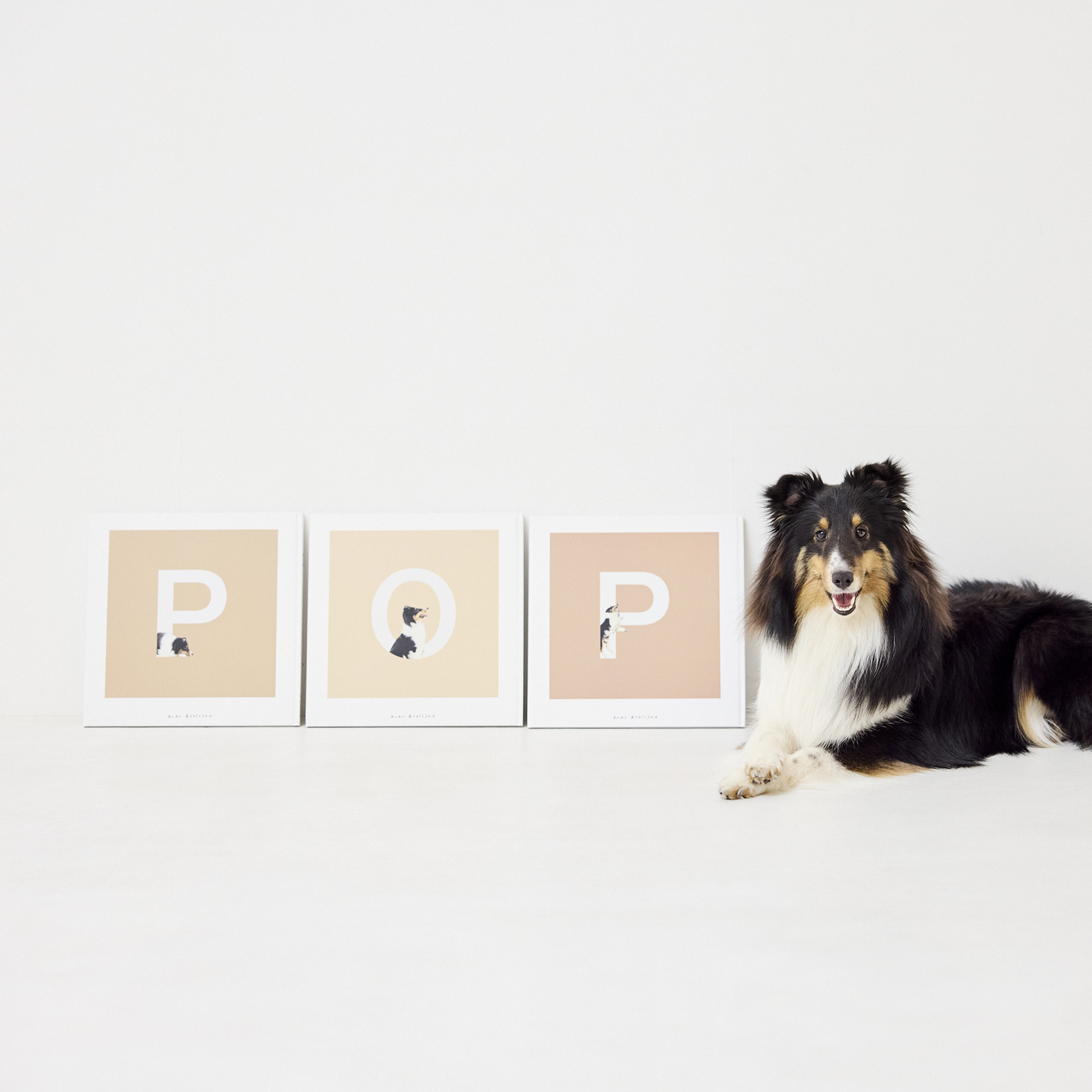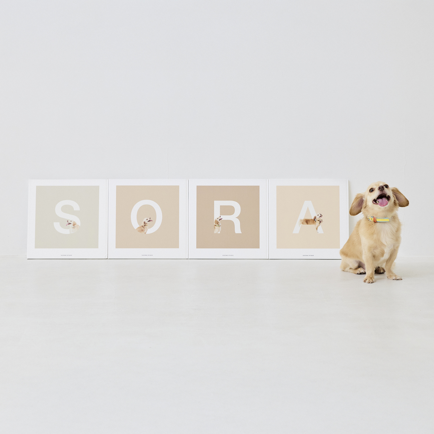 わんちゃんのお名前のイニシャルから、お顔を出しているデザイン。ミニマルアートの分野で「世界に紹介したい日本の写真家」と評された、写真家・堂園博之が、イニシャルアートを、わんちゃんの仕草や表情に合わせてオリジナルデザインをいたします。
