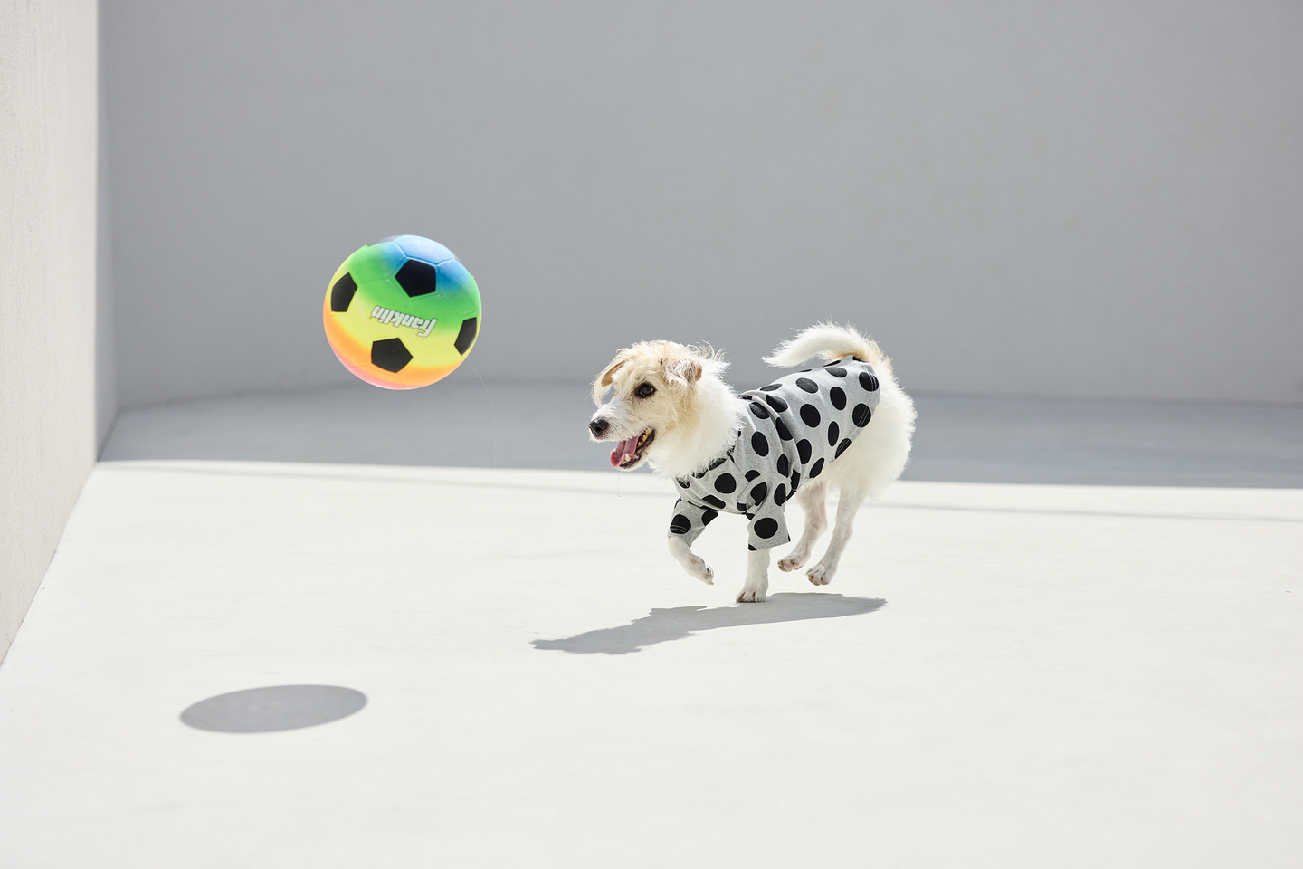 美術館のようなシンプルミニマルな空間の中で、わんちゃんもノーリードで、思いっきり走ったり、遊んだりして撮影できたら素敵だな〜と、ずっと思っていました。