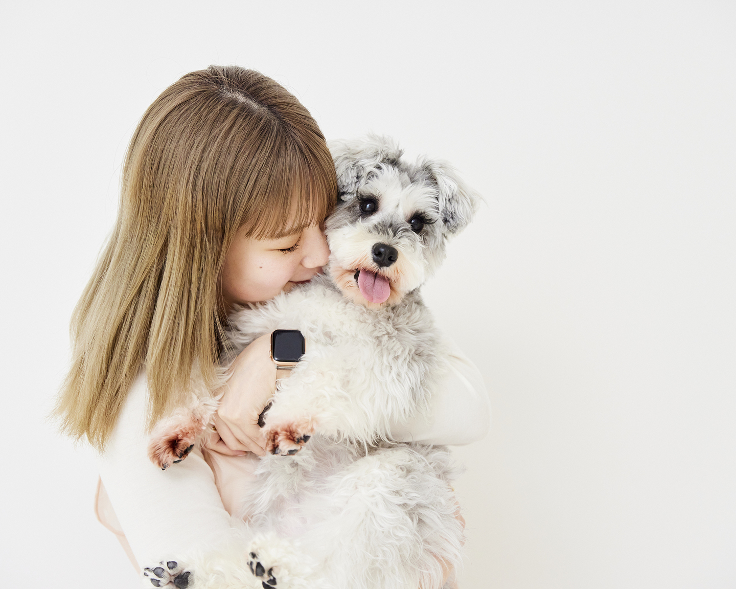 ・わんちゃんをぎゅ〜っと 抱きしめた写真を撮影