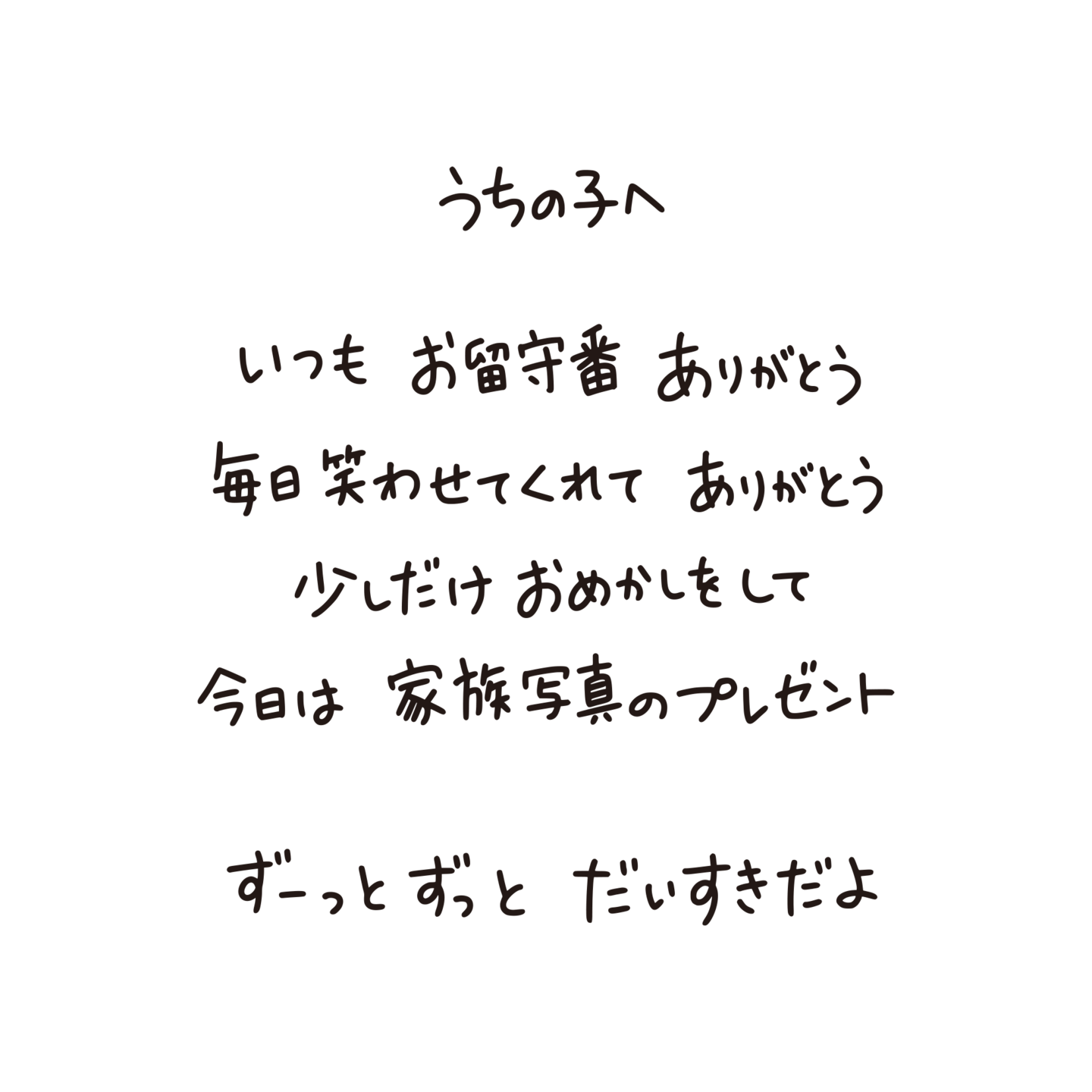 「わんちゃんだけはダメなの?」 | このキャンペーンに参加することをきっかけに、愛犬と一緒に写る「家族写真」が1枚うまれる。ご家族さまの大切な思い出にもなると素敵なので、できれば家族やお友達に手伝ってもらったりして、わんちゃんと一緒に写った写真をおすすめしたいです。 |