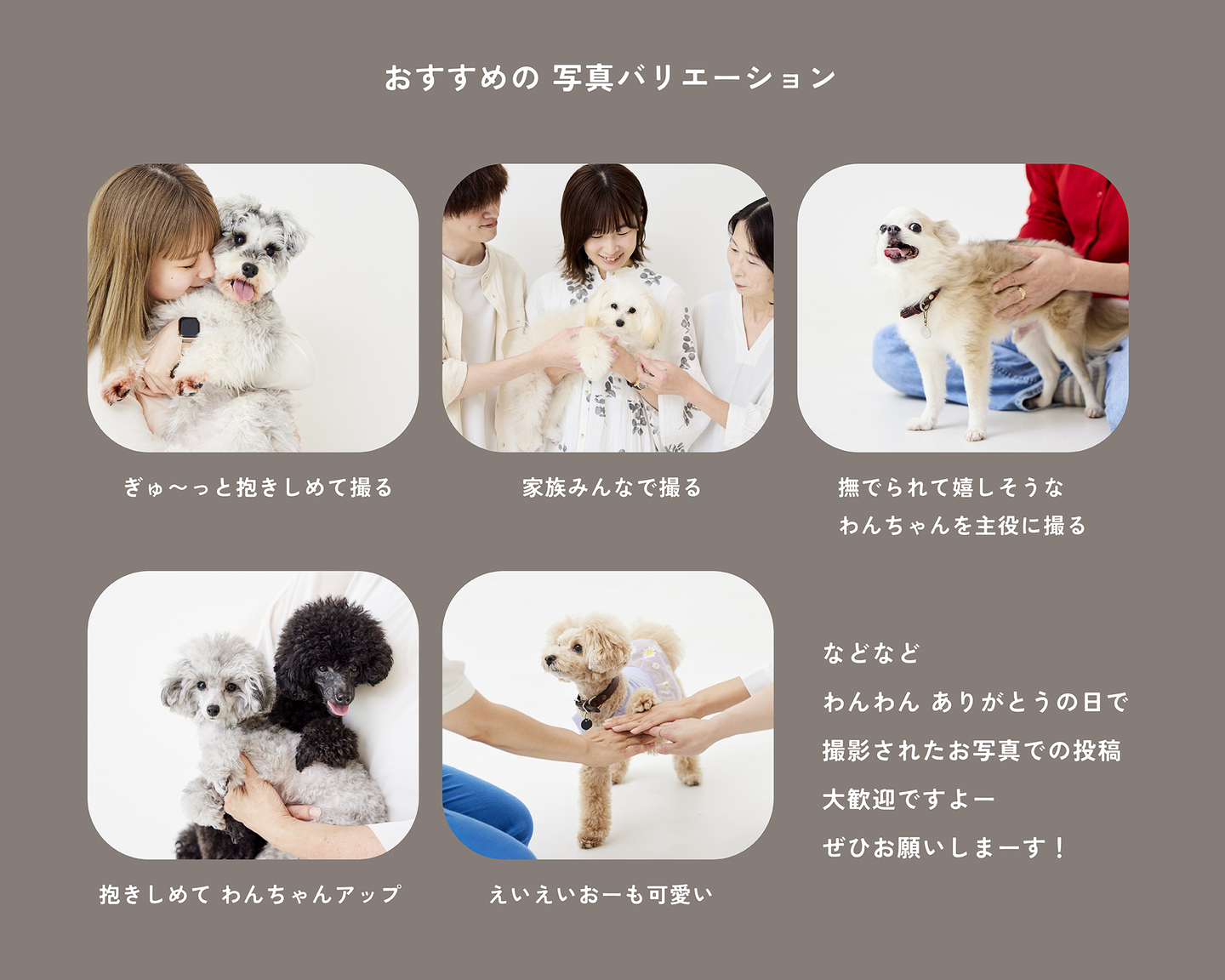ご家族さまの楽しそうな表情や声色で、わんちゃんへの感謝の気持ちが伝わる日にできたら素敵だなとおもって「わんわん ありがとうの日」という名前をつけました。