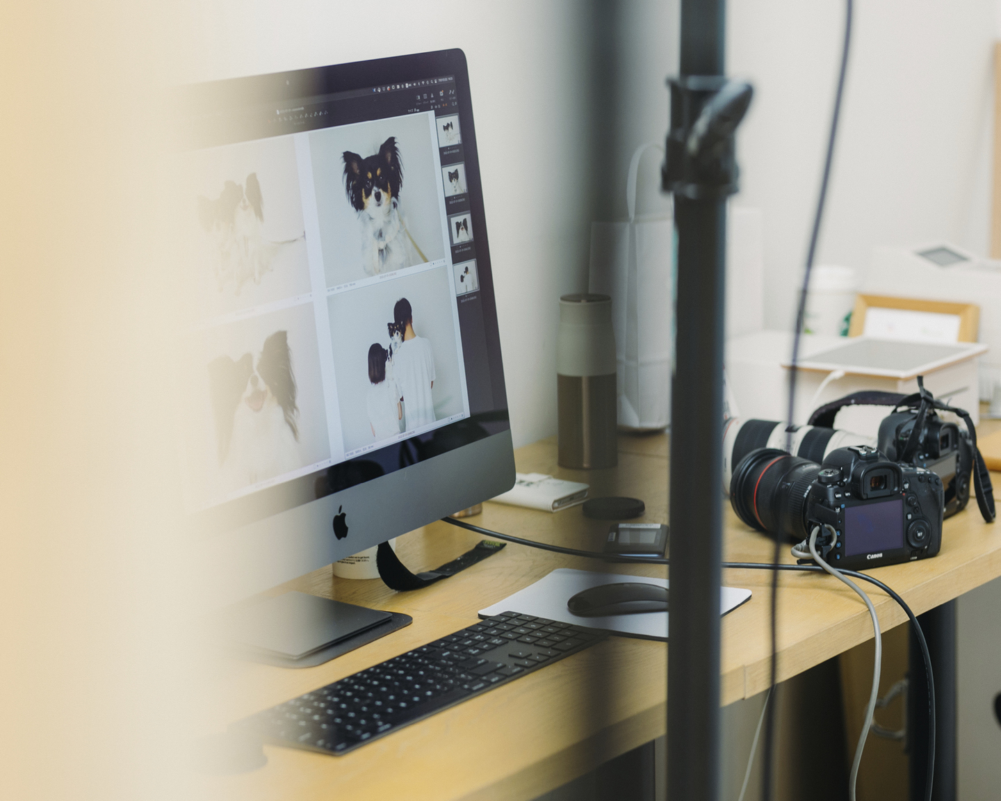 撮った写真は、すぐにパソコン画面でご確認いただけます。この撮影会では、お時間に限りがございますので、写真家が素敵な記念写真をセレクトをさせていただきます。