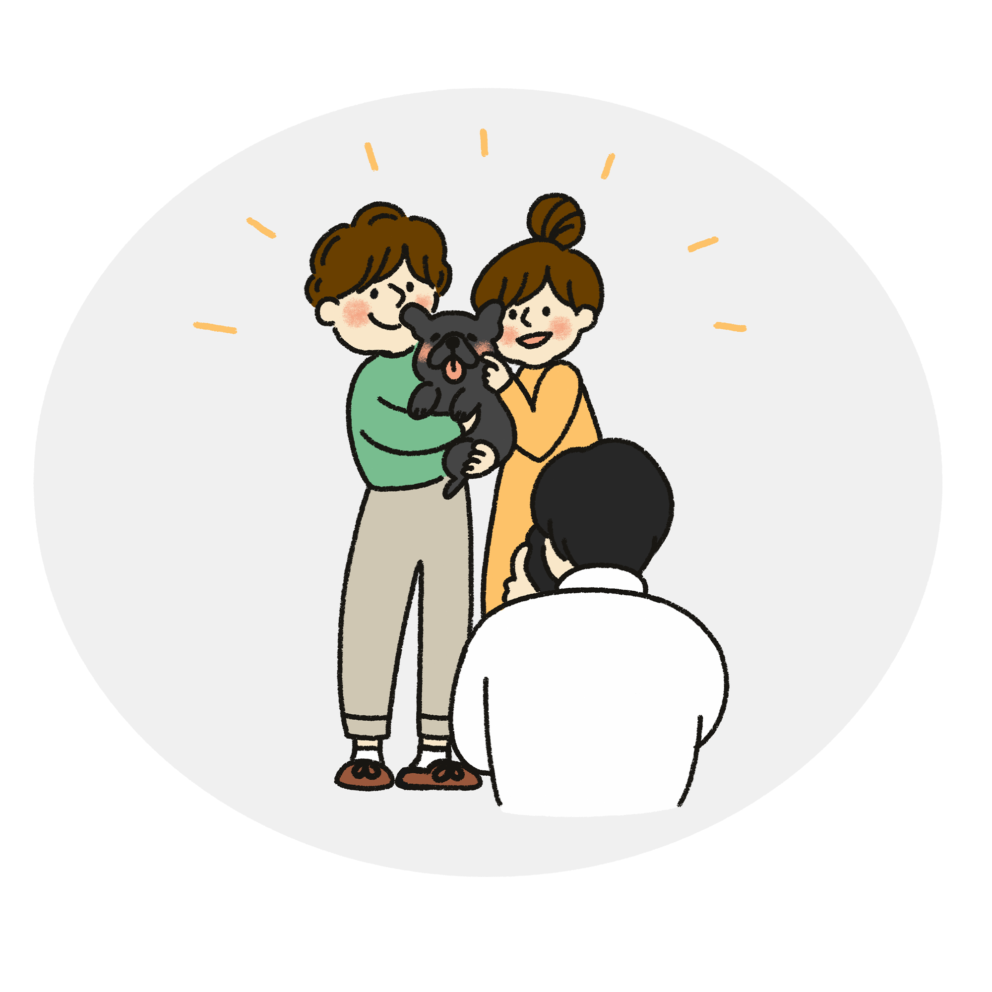 【抱っこして家族写真】【わんちゃんソロ写真】【ぎゅ〜っと抱きしめてツーショット】お好きなポーズをお選びください。ぜんぶもOKですよ!